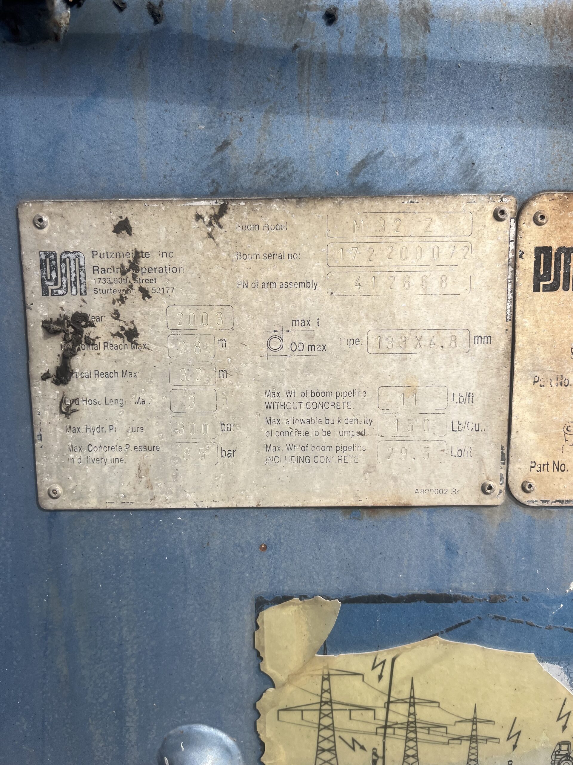 2003 Putzmeister BSF 32Z $100,000